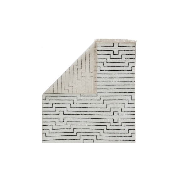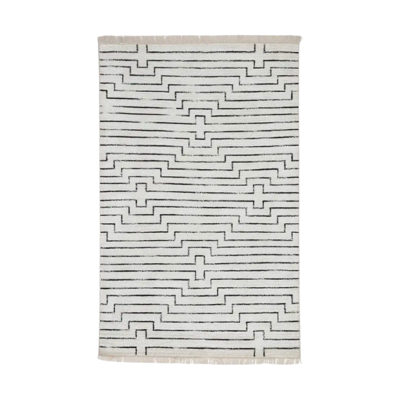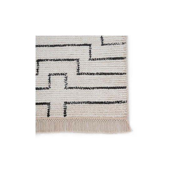 This modern hand-loomed rug enriches spaces with bold geometric patterning and a temptingly soft feel. Texture-rich and captivating in sleek spaces, this accent showcases a graphic linear design in a classic black and white colorway.