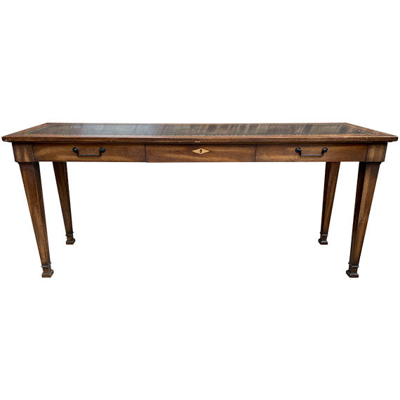 72" Unfinished 3 Drawer Vintage Console Leather Top #08839