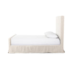 Slipcovered bed upholstered in sustainably made Belgian Linen™. Naturally durable and soft to the touch, Libeco™-sourced linens are artisan-made and free of toxic chemicals. Slipcovered styles are fully removable and machine-washable for easy care.