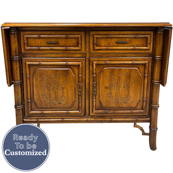 35.5"-62.5" Unfinished 2 Door 2 Drawer Vintage Bamboo Style Bar Cart #08806