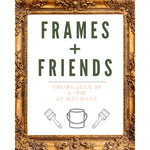 Come join us Thursday, July 28th from 5-7 p.m. for our Frames + Friends Event! We'll be painting vintage frames to take home.