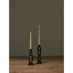 Beautiful layered curvature of the matte black metal Pozas Candlestick offers a sculptural look for home decor. Create height for taper candles, or display on a shelf as an abstract piece. Group with other unique vessels for an artistic scene.