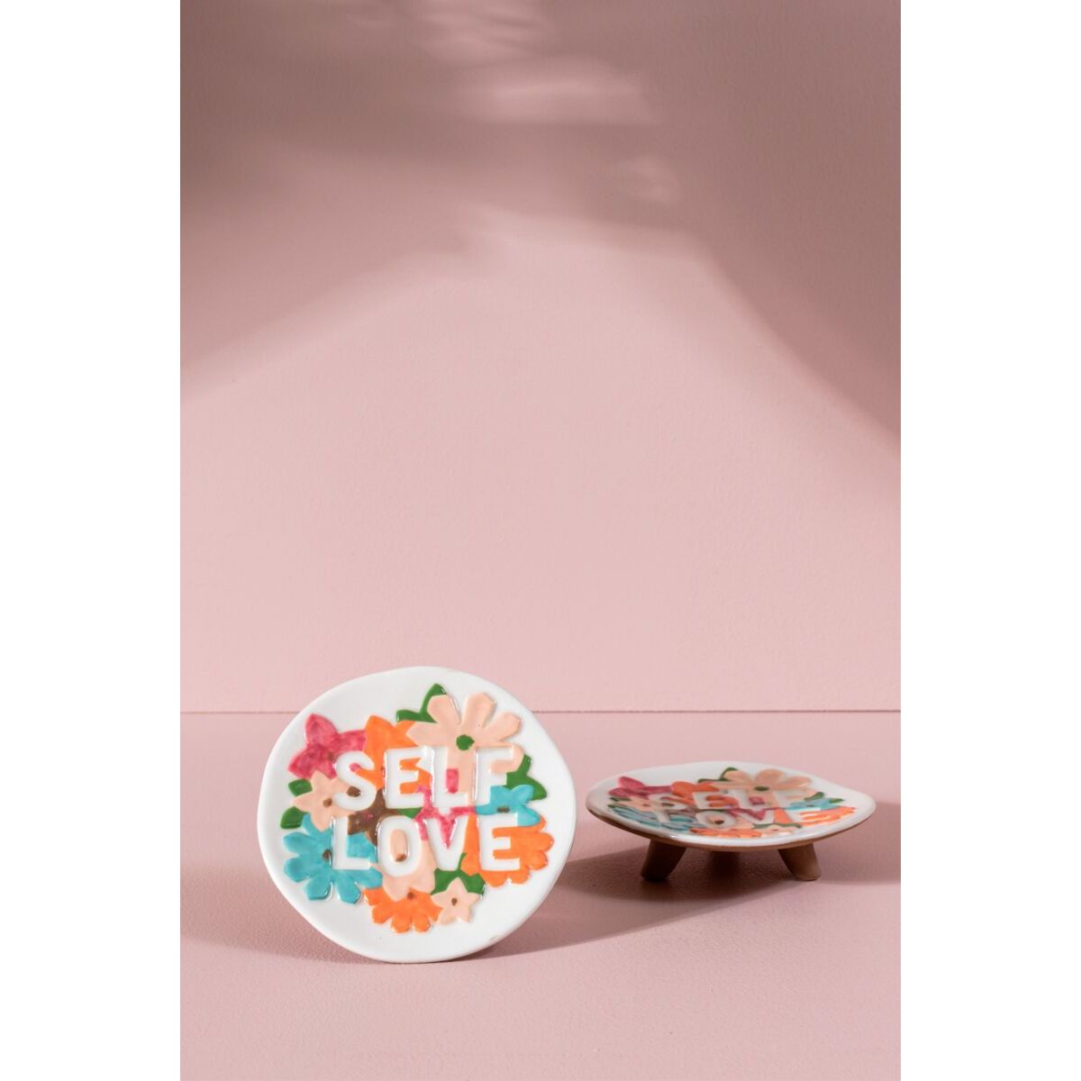 Keep your affirmations close with a little reminder that you are worthy of love. The footed ceramic Affirmation Tray is hand painted & features a raised flower motif. Fill with trinkets, rings, or keep empty to reveal words of encouragement.