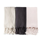 Indulge in this oversized cable-knit throw complemented with a tassel design. This is the perfect throw to wrap yourself with or dress at the foot of the bed.