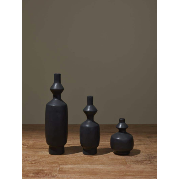 Create height for single floral stems or grasses with the small, matte black ceramic Oaxaca Vase. Lovely layered curvature offers a sculptural look that adds interest to decor. Group with the Granada or Ebano vases for a gorgeous artistic display.