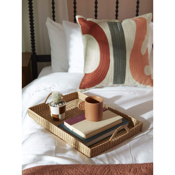 Add texture to the room with the 100% handmade Silao Tray, made in Indonesia from common rattan, a sustainable natural material. This multipurpose piece is braided to be sturdy & structured. Style with drop-in plants, candles, or other decor.