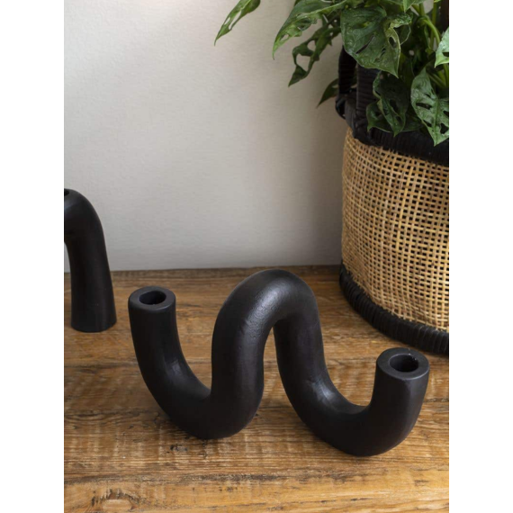 The curled silhouette of the Xavier Candle Holder is finished with a texture that leaves every piece unique. Each end of the tube is left open and is designed to hold a taper candle.