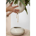 Less work & happy plants make for the perfect pot. The small, ceramic, self-watering Tartu Pot with Saucer features a cotton rope wick threaded through 2 holes in the pots bottom that allows water to slowly & continuously soak into plant soil. The pot & top half of the circular-shaped water reservoir base are glazed in a speckled glossy finish, while the bottom of the base is textured, unglazed clay.