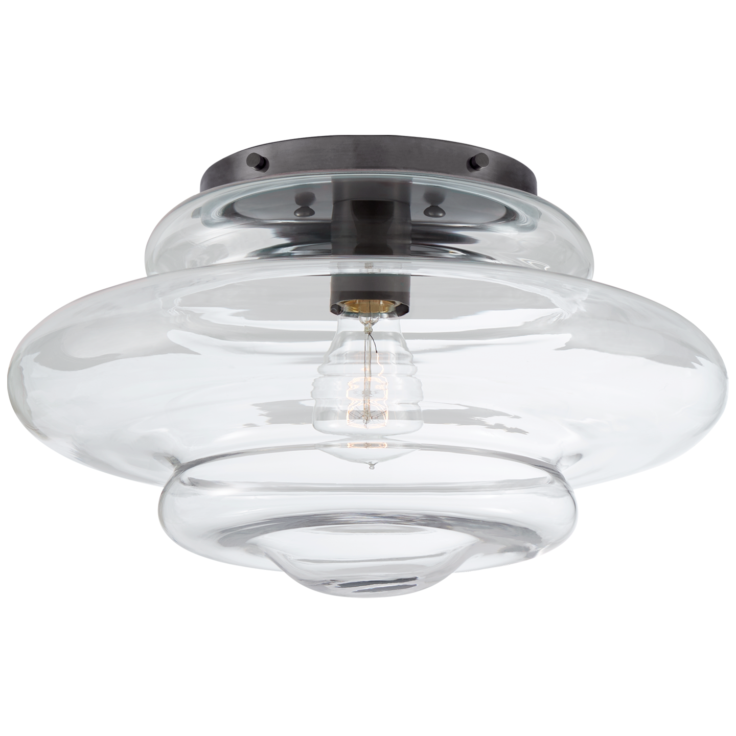 Defined by its signature glass shade with undulating, circular lines, Kelly Wearstler's Tableau series embodies modern classic design. Mixing metal with clear or textured volcanic glass, the unique forms create elegant flush mounts and sconces that are ideal for any space.