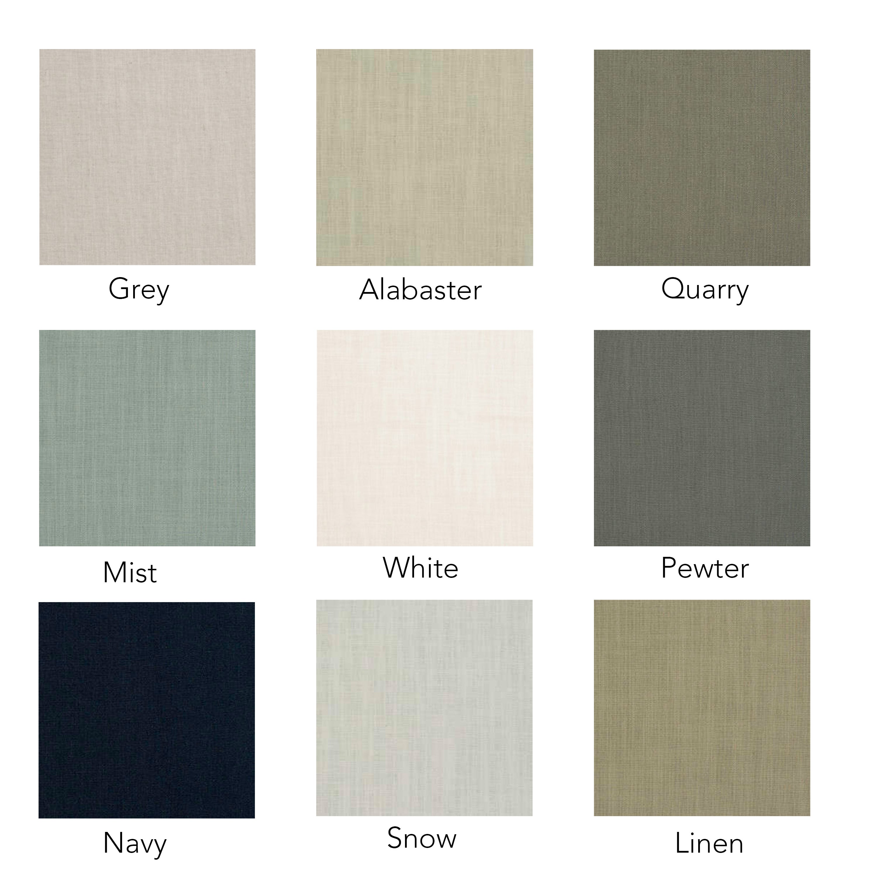 52% cotton / 48% polyester, white sateen, crease resistant and water repellent lining