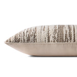 This neutral throw pillow features an abstract ivory design against a heathered taupe background with a soft, high-low texture. The pillow cover is made of cotton and polyester and measures 13” x 35”, an elongated size to style in living rooms and bedrooms.