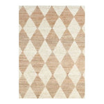 Huge alternating diamonds in two colors are dhurrie woven in braided jute on a natural undyed base. Handwoven in India, the simple yet compelling design creates a dramatic and striking focal point. One of the modern creations from the design collaboration between Annie and West Coast designer Mark D. Sikes, a traditional tailored look with a twist of east meets west