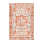 The Turin brings vintage inspiration to life with ornate, worldly designs and a timeless distress effect. This rug features a digitally printed Persian medallion in faded yet stunning hues of orange and gray. This low-profile rug is made of cotton, polyester, and soft chenille for a flat, durable finish.