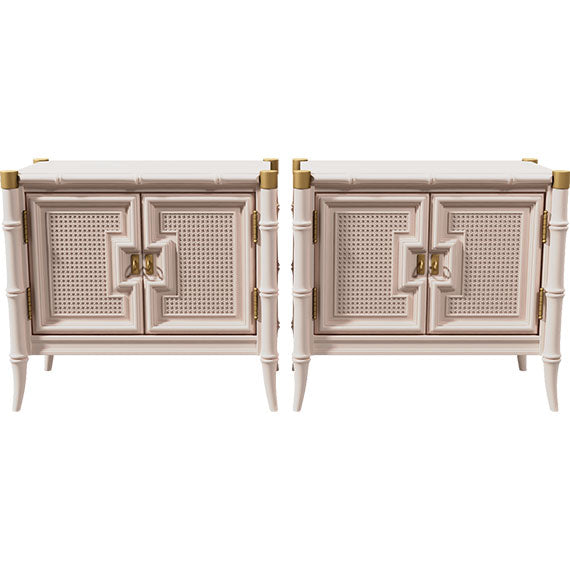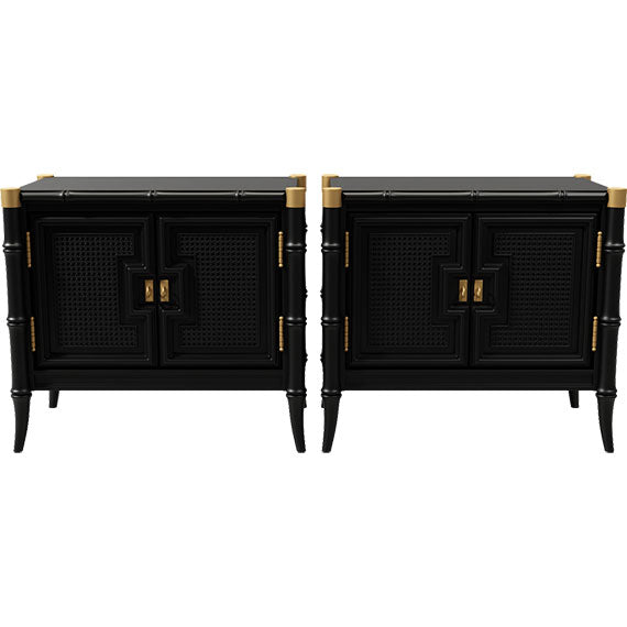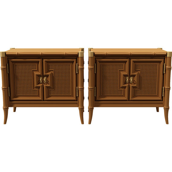 27.5" Unfinished 2 Door Vintage Bamboo Style Side Table Set of 2 #08833
