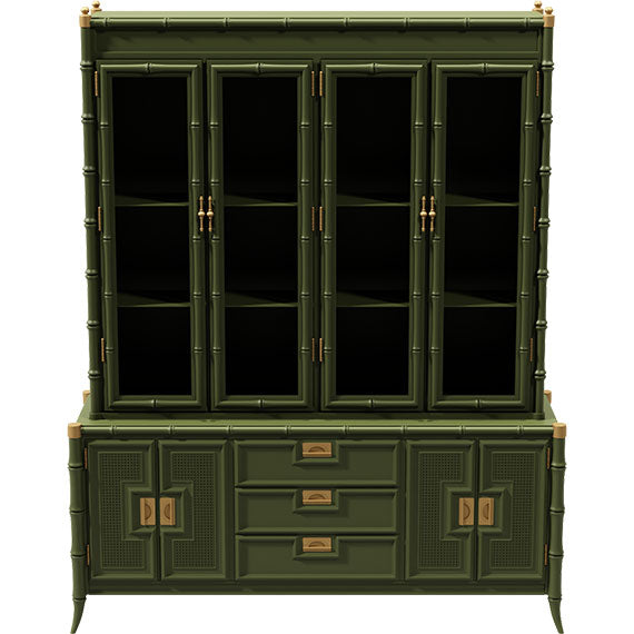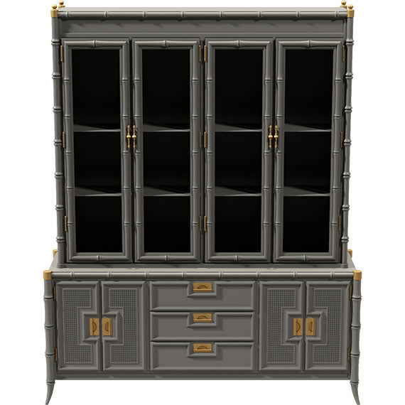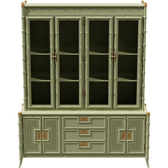 68.5" Unfinished 6 Door 3 Drawer Vintage Bamboo Style Hutch #08841