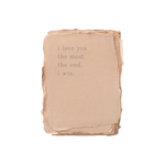Beautiful paper. Made by beautiful people. For a beautiful cause. Our handmade deckled edge paper collection is letterpress printed in-house late at night with lots of coffee. This card is meant to be treasured for years to come.